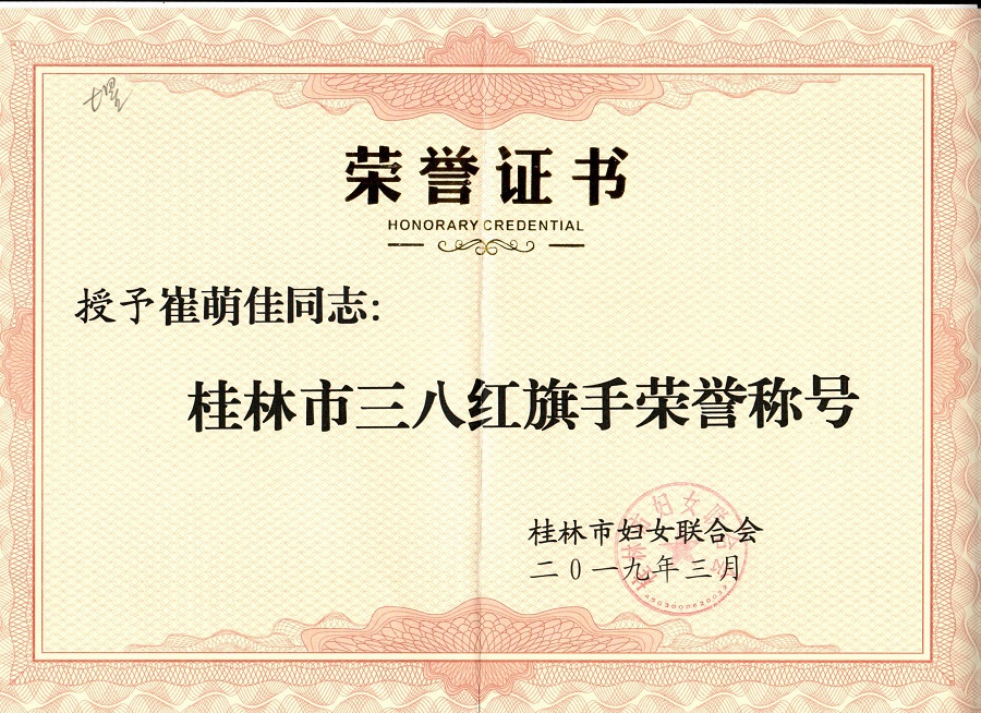 2018年,我市各族各界婦女認(rèn)真貫徹落實(shí)習(xí)近平新時(shí)代中國(guó)特色社會(huì)主義思想和黨的十九大精神,立足本職、勇于擔(dān)當(dāng)、積極作為,涌現(xiàn)出一批又一批先進(jìn)個(gè)人和先進(jìn)集體,生動(dòng)詮釋了新時(shí)代女性聽(tīng)黨話(huà)、跟黨走的堅(jiān)定追求,敬業(yè)勤勉的優(yōu)秀品格和追求卓越的巾幗風(fēng)采。為樹(shù)立典型、表彰先進(jìn)、凝聚力量,引導(dǎo)和激勵(lì)廣大婦女在實(shí)現(xiàn)桂林“兩個(gè)建成”目標(biāo)、建設(shè)壯美廣西、共圓復(fù)興夢(mèng)想的偉大實(shí)踐中再立新功、再創(chuàng)佳績(jī),經(jīng)過(guò)組織推薦,桂林市婦聯(lián)決定,授予桂林萬(wàn)禾農(nóng)產(chǎn)品有限公司黨總支部書(shū)記崔萌佳等30名同志桂林市三八紅旗手榮譽(yù)稱(chēng)號(hào),授予桂林市七星區(qū)羊角山等30個(gè)單位(集體)桂林市三八紅旗集體榮譽(yù)稱(chēng)號(hào)。