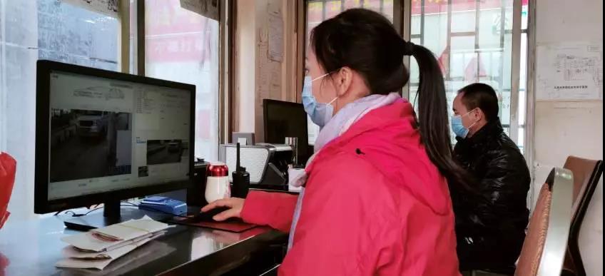 ▲市場門崗工作人員佩戴口罩進行工作