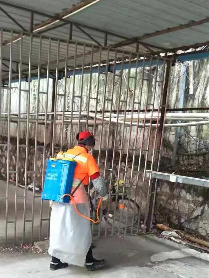 ▲清潔人員噴灑消毒水對市場進(jìn)行每日一次全方位消毒