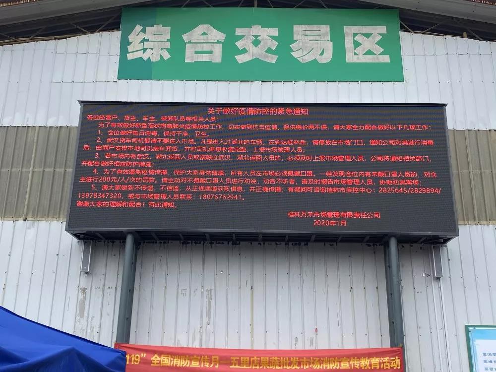 桂林五里店果蔬批發(fā)市場是湘桂黔三省交界最大的農(nóng)產(chǎn)品交易平臺,農(nóng)產(chǎn)品流通范圍覆蓋全國多個省市,人員車輛密集且流動性大,防疫任務(wù)艱巨。為保障抗疫期間農(nóng)產(chǎn)品供應(yīng),避免疫情在市場內(nèi)傳播,萬禾市場管理公司多措并舉,全力以赴。