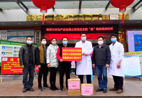 當(dāng)前新型冠狀病毒感染的肺炎防控進(jìn)入關(guān)鍵時(shí)期,醫(yī)用口罩等物質(zhì)緊缺。得知這一消息,桂林萬(wàn)禾農(nóng)產(chǎn)品有限公司黨總支積極行動(dòng),多方渠道購(gòu)買醫(yī)用N95口罩,踴躍捐贈(zèng)醫(yī)療物品,共同抗擊疫情。