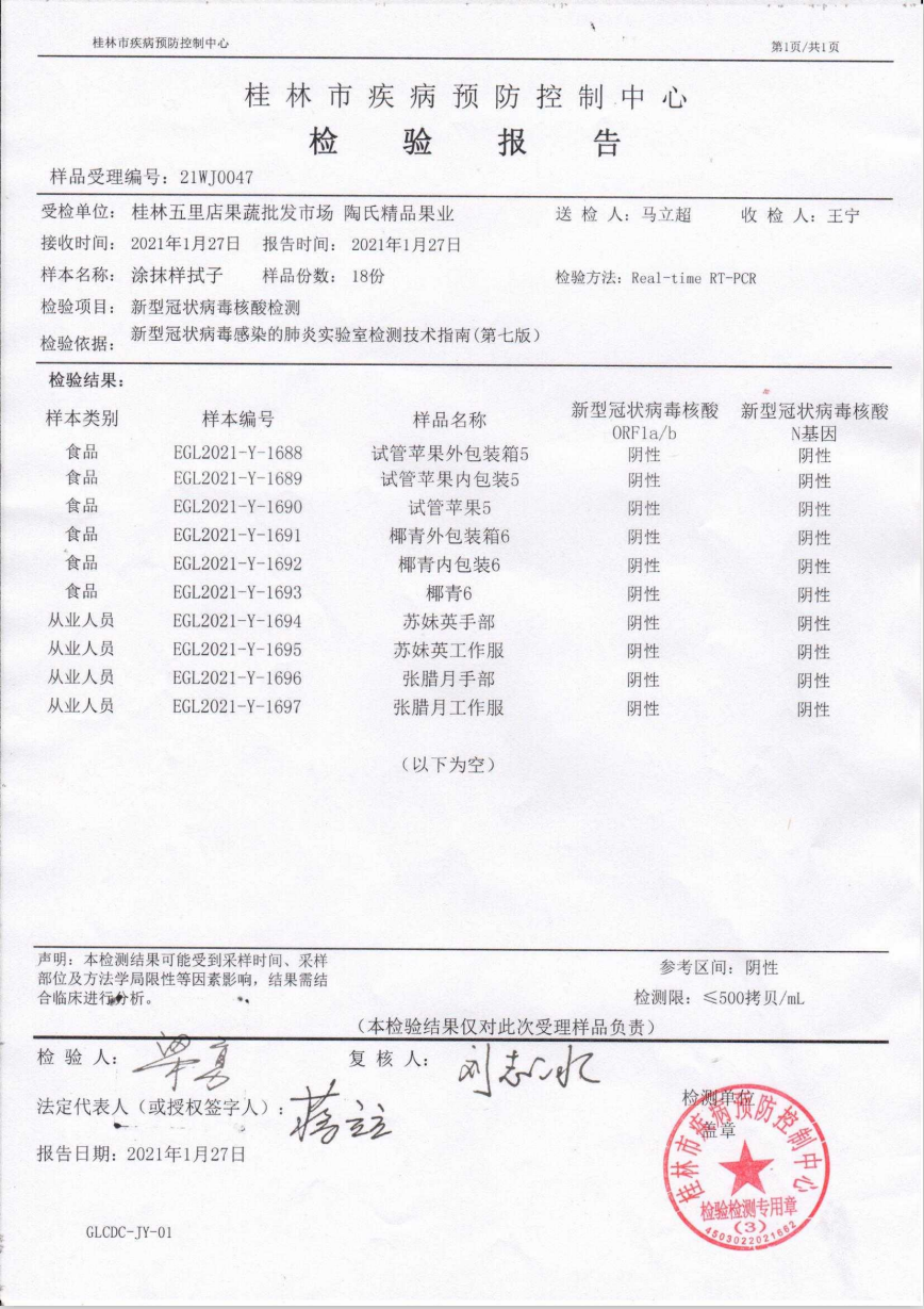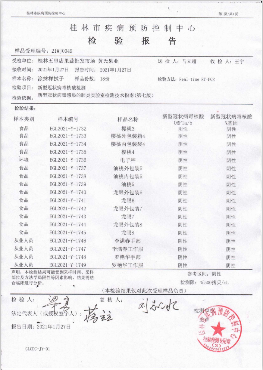 臨近春節(jié),為加強(qiáng)疫情防控常態(tài)化工作,1月27日上午,桂林五里店果蔬批發(fā)市場邀請到桂林疾控中心的專業(yè)檢測人員對市場進(jìn)口水果以及環(huán)境開展抽樣核酸檢測工作。