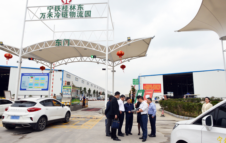 3月18日下午,南寧鐵路局副局長楊燁,廣西寧鐵物資工業(yè)有限公司黨委書記、董事長石小東,廣西寧鐵物資工業(yè)有限公司桂林分公司總經(jīng)理陸泉州,南寧鐵路局開發(fā)處處長鄧順秋等赴寧鐵桂林東萬禾冷鏈物流園,考察寧鐵桂林東萬禾冷鏈物流園三期功能配套建設相關工作,桂林萬禾農產(chǎn)品有限公司黨總支書記、總經(jīng)理崔萌佳隨行講解。