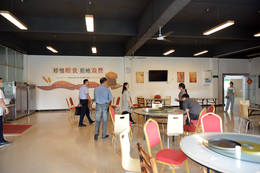 ▲專家組一行對(duì)餐飲區(qū)進(jìn)行檢查評(píng)定