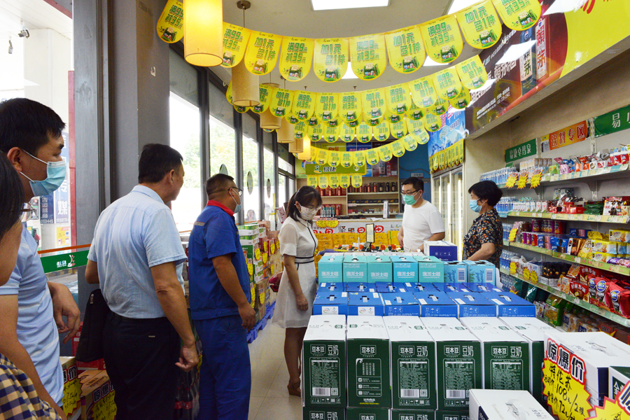 ▲專家組一行對(duì)便利店功能區(qū)進(jìn)行檢查評(píng)定