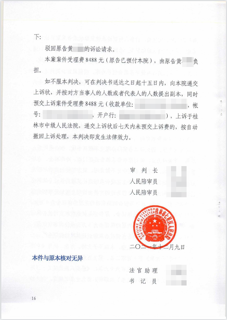法院駁回黃某某提起的訴訟請求