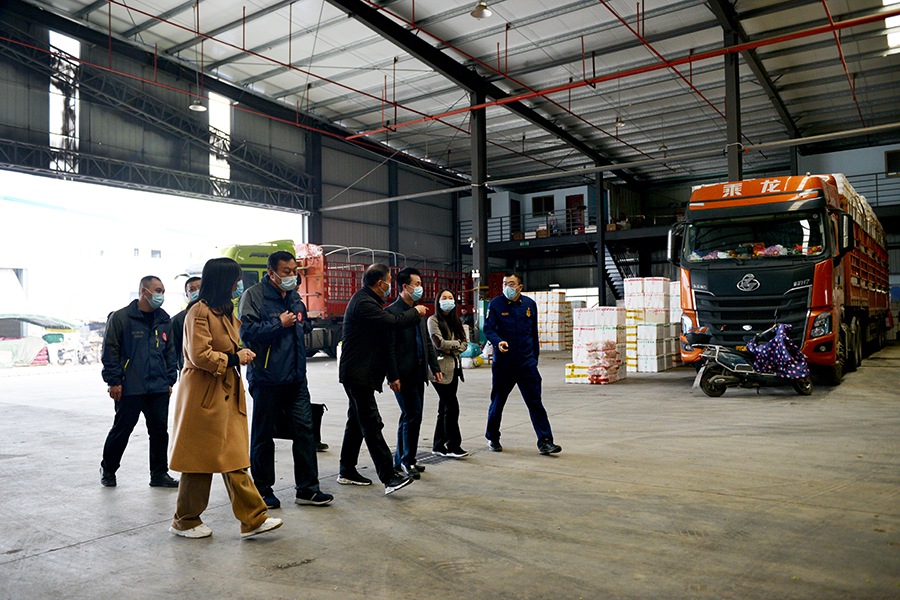 2022年虎年新春臨近之際,市商務(wù)局呂佳軍副局長(zhǎng)陪同自治區(qū)商務(wù)廳建設(shè)處曹柯笛處長(zhǎng)一行,及七星區(qū)常務(wù)副區(qū)長(zhǎng)文杰組織安全檢查小組來桂林五里店果蔬批發(fā)市場(chǎng)和寧鐵桂林東萬禾冷鏈物流園開展一季度開門紅、疫情防控、安全生產(chǎn)、市場(chǎng)保供等綜合調(diào)研和安全生產(chǎn)檢查,并作出工作部署,確保節(jié)日期間各經(jīng)營(yíng)場(chǎng)所安全穩(wěn)定運(yùn)營(yíng),農(nóng)產(chǎn)品供應(yīng)達(dá)到“六穩(wěn)”“六?!币?。