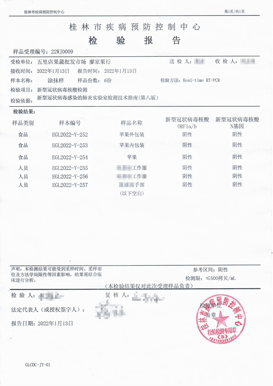 為保證春節(jié)期間食品安全質(zhì)量,嚴(yán)防疫情從農(nóng)產(chǎn)品輸入。近期,萬禾公司邀請(qǐng)桂林疾控中心的專業(yè)檢測(cè)人員對(duì)桂林五里店果蔬批發(fā)市場(chǎng)內(nèi)的進(jìn)口水果以及經(jīng)營(yíng)環(huán)境開展抽樣核酸檢測(cè)工作。