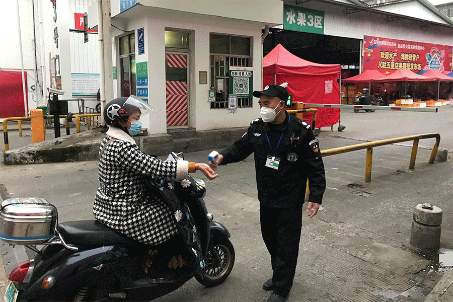 充分落實(shí)防控主體責(zé)任,守好外防輸入各個(gè)關(guān)口加強(qiáng)車輛出入管理,對(duì)進(jìn)出市場(chǎng)的每臺(tái)車輛進(jìn)行仔細(xì)消毒,針對(duì)中高風(fēng)險(xiǎn)地區(qū)貨源車輛施行入場(chǎng)管控制度。加強(qiáng)公司員工及市場(chǎng)經(jīng)營(yíng)戶的排查管理,做好人數(shù)限制和有序引導(dǎo)分流等工作,禁止中高風(fēng)險(xiǎn)區(qū)域人員及車輛進(jìn)入市場(chǎng)。