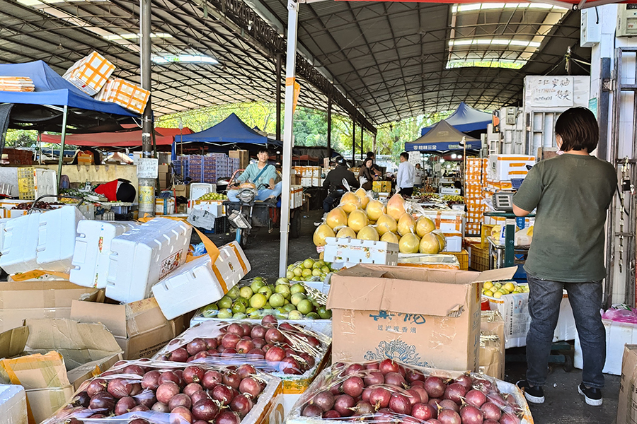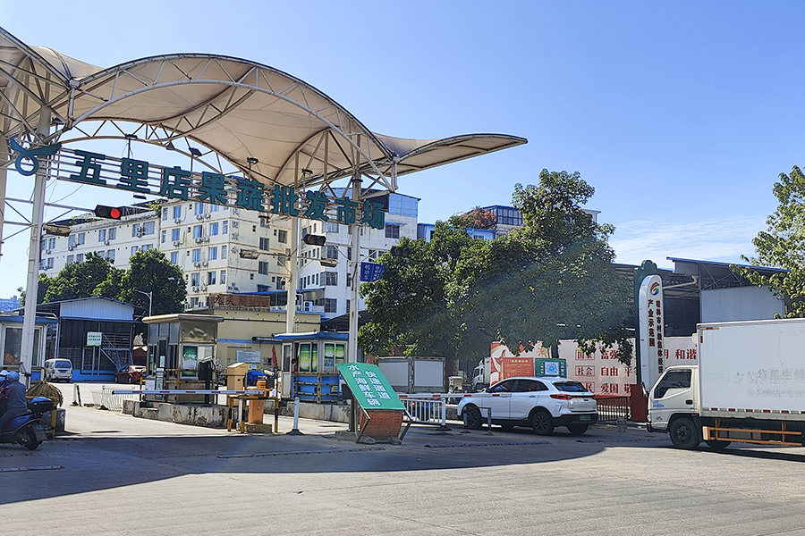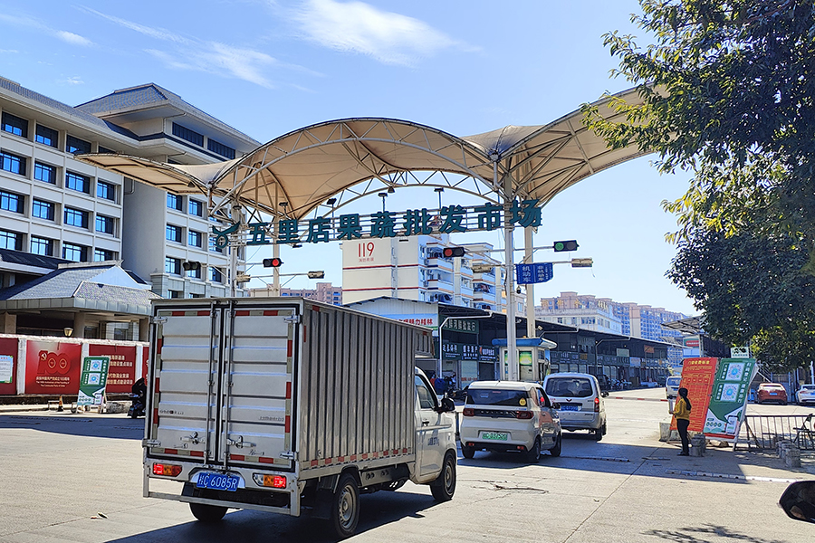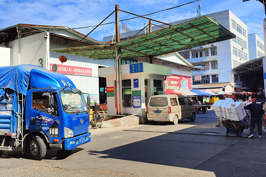 ▲車輛和人員有序進入五里店果蔬批發(fā)市場
