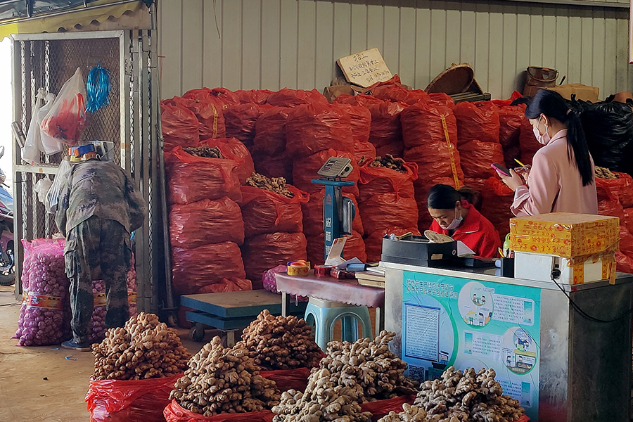 ▲五里店果蔬批發(fā)市場內(nèi)交易場景