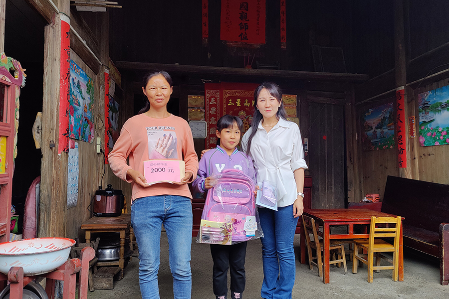 ▲為困境家庭學(xué)生贈送愛心助學(xué)金及學(xué)習(xí)用具