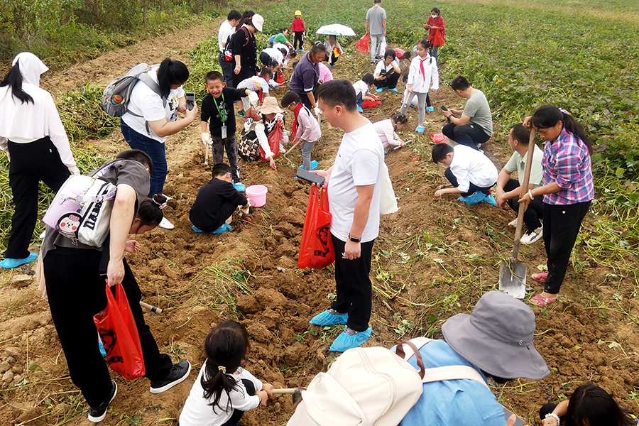 ▲挖紅薯掰玉米砍甘蔗師生家長們走進田間地頭體驗秋收農務