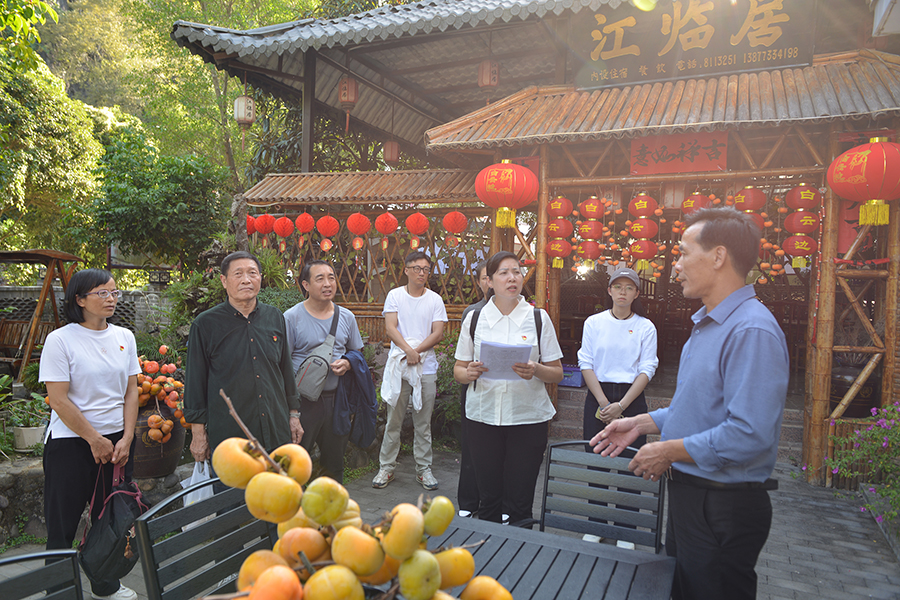 首先,全體黨員來到紅巖村“黨旗領(lǐng)航 電商服務”民宿點,認真聆聽了恭城紅巖村旅游協(xié)會會長、全國勞模、自治區(qū)第十一次黨代會代表朱建倫對紅巖村歷史文化和月柿特色農(nóng)產(chǎn)品發(fā)展模式進行講解,并與大家交流分享如何發(fā)展生態(tài)農(nóng)業(yè)旅游和鄉(xiāng)村振興示范村的建設情況及經(jīng)驗做法。